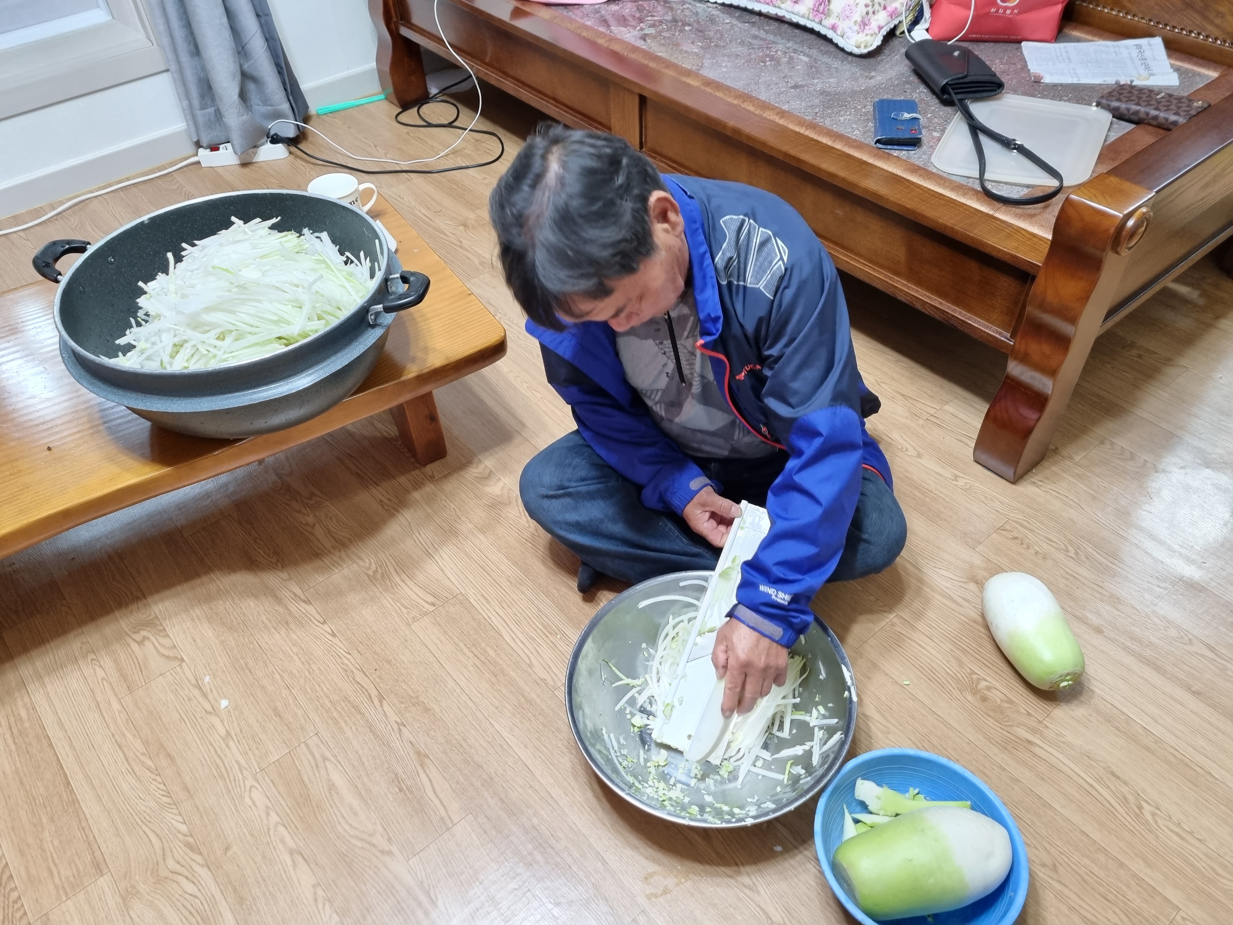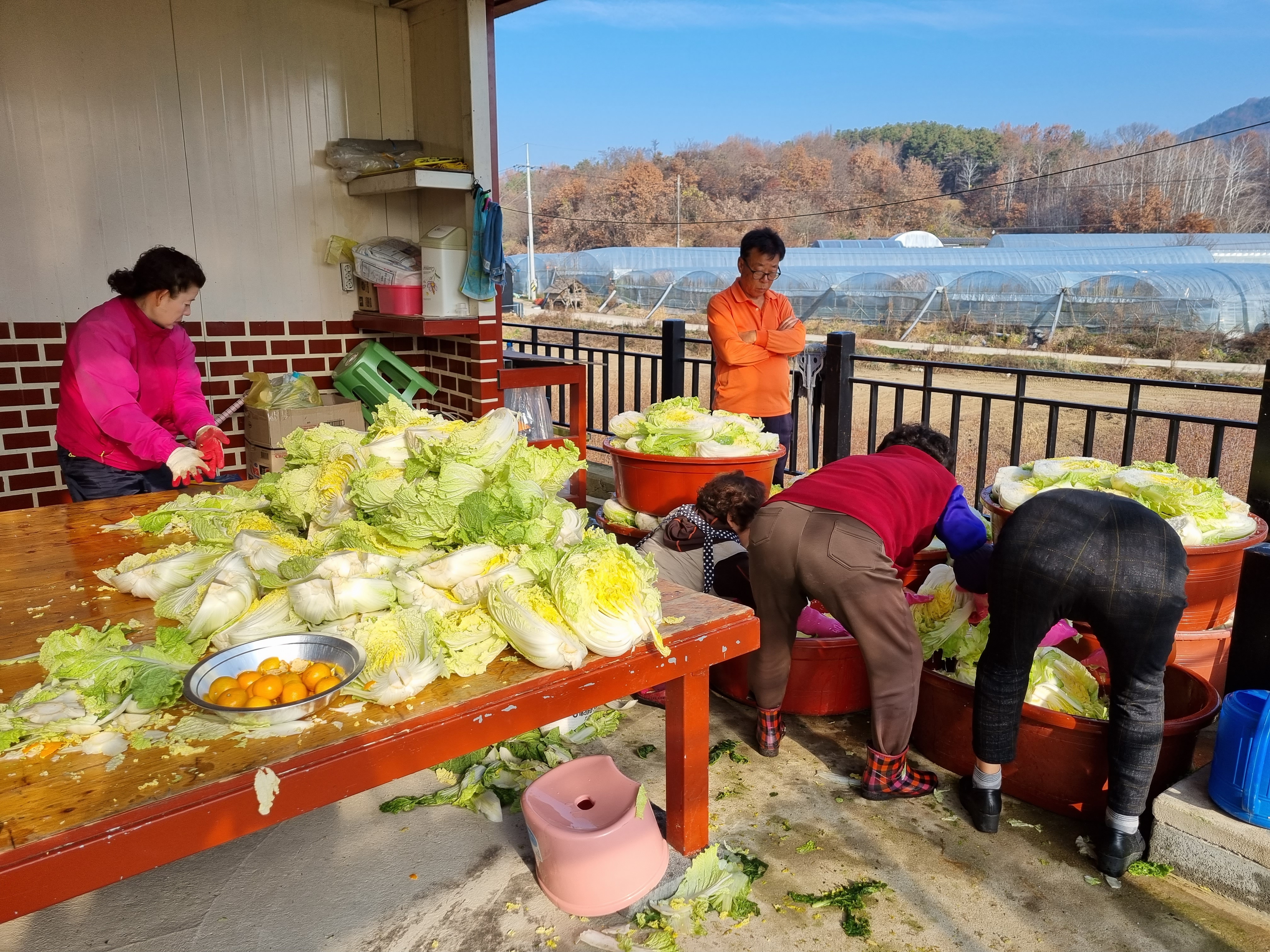 아침먹고 김장하기 위해 준비를 하고