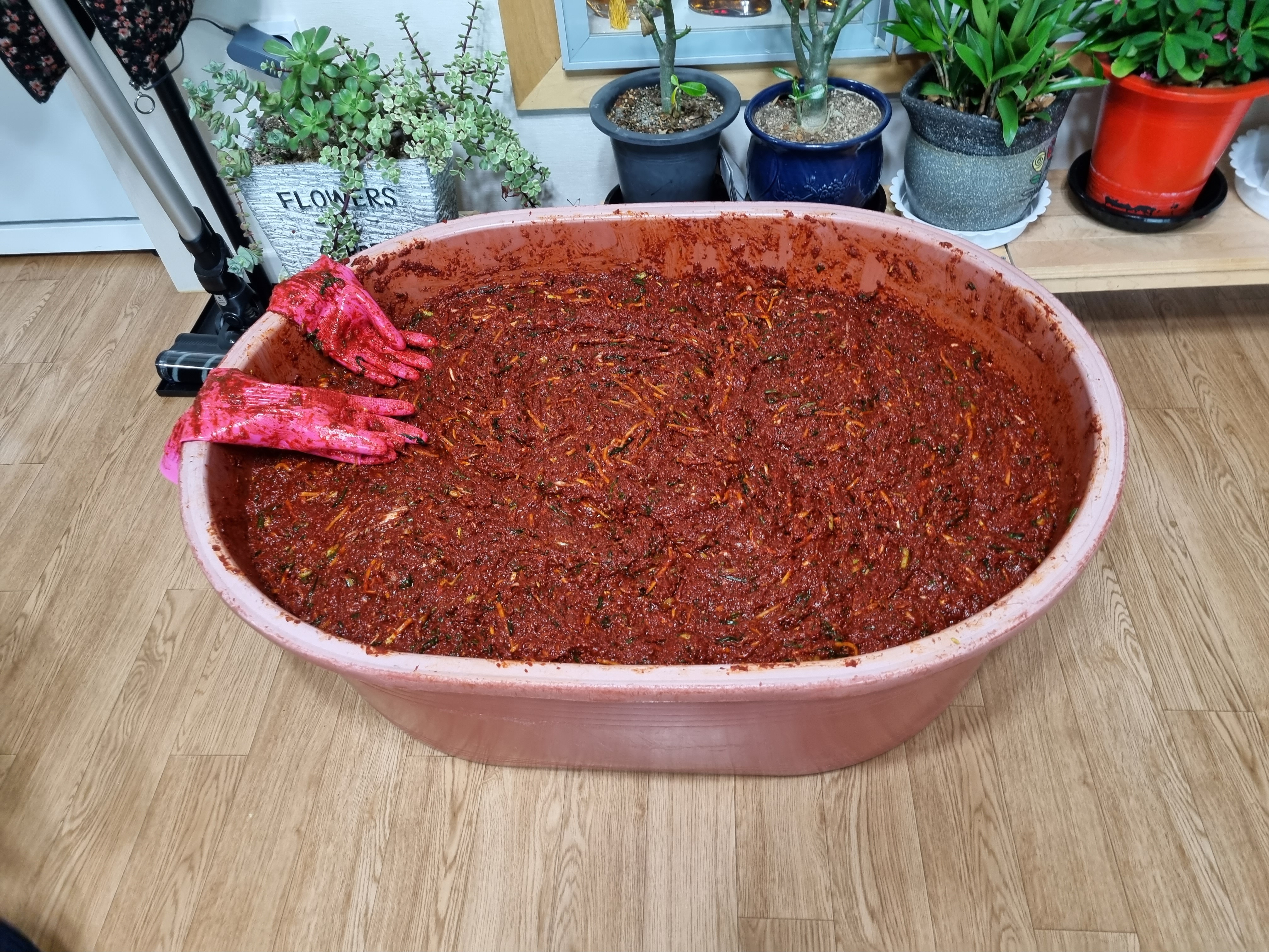 난 절인 배추를 방으로 날라주기---!!!